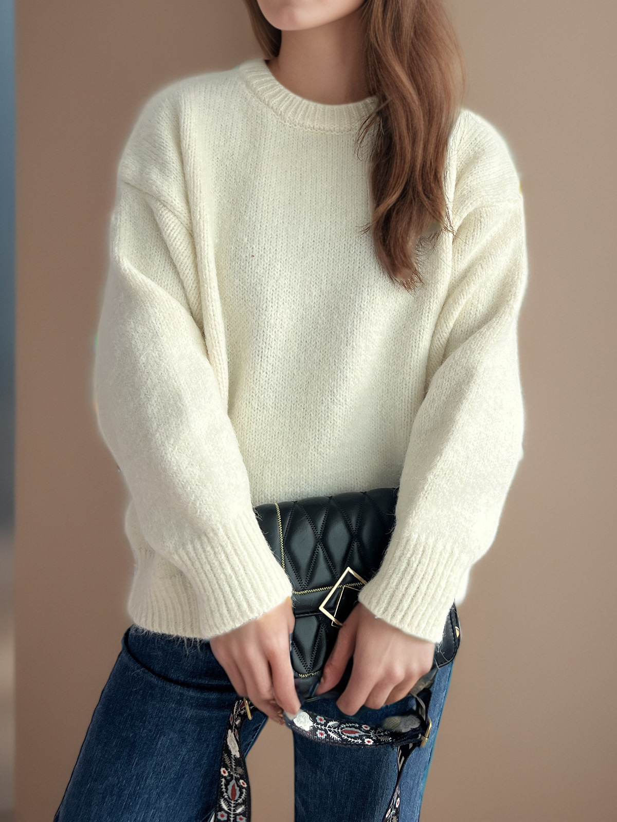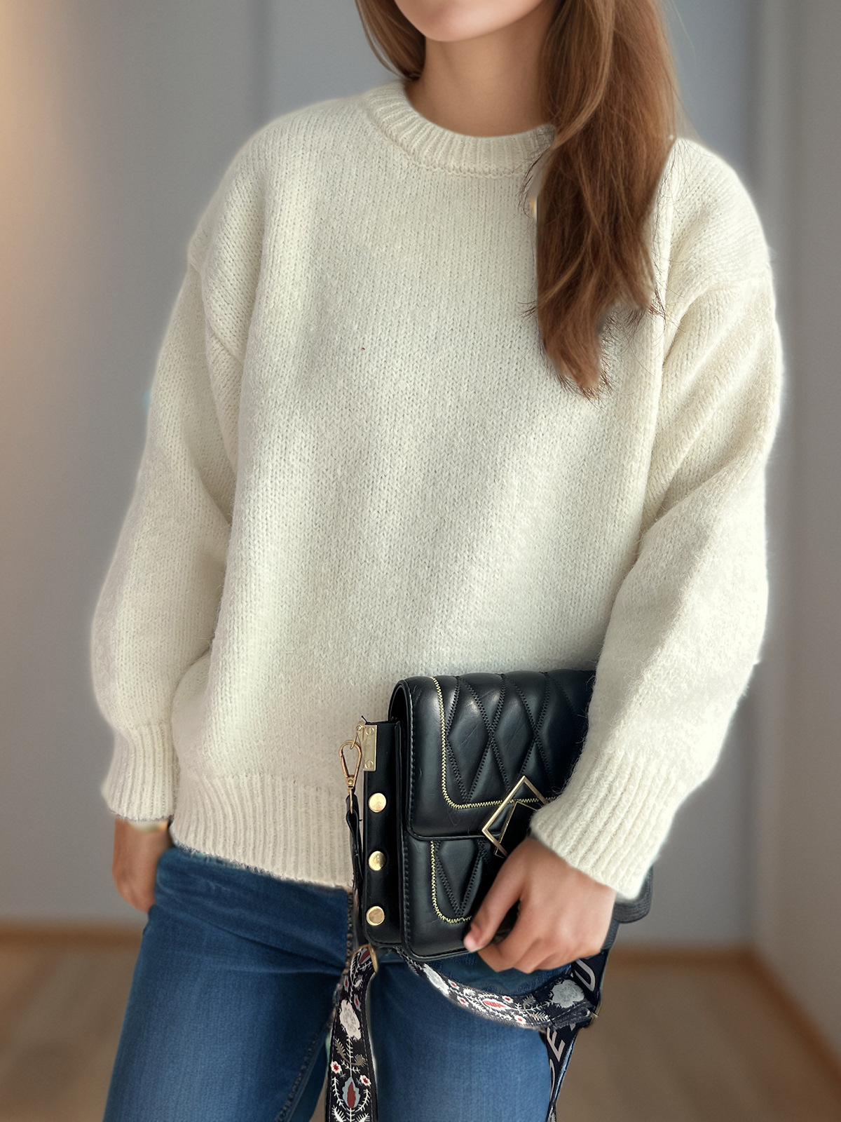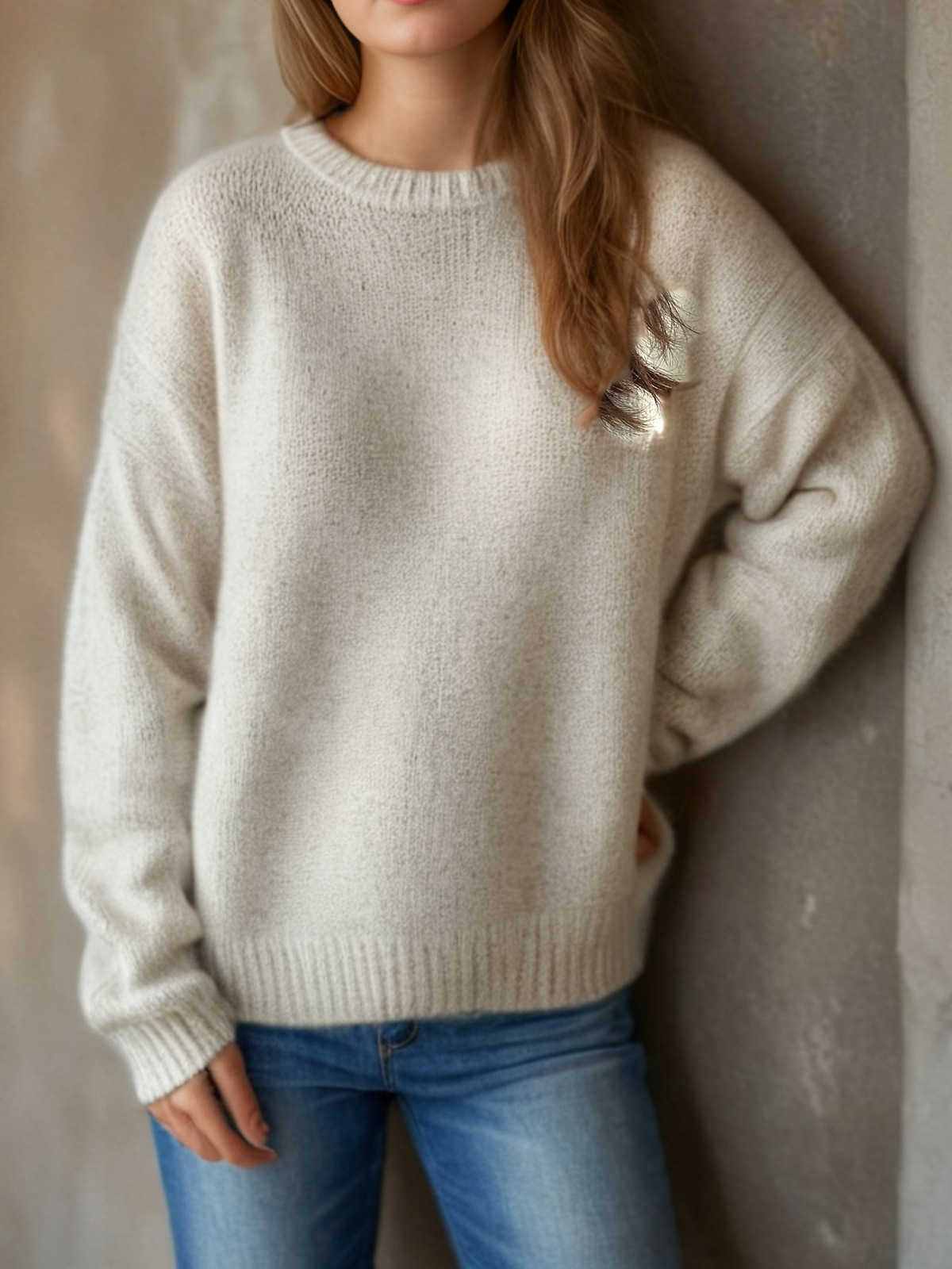 Pull femme ample à encolure ronde pour l’automne et l’hiver